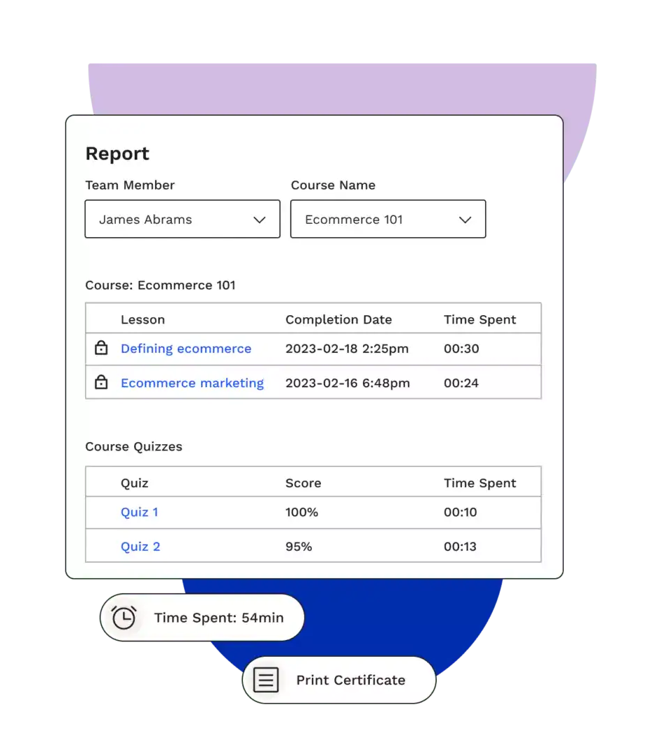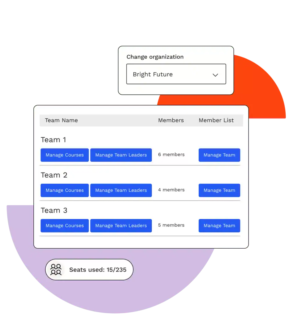 - Reports/course progress access for particular teams by team leaders and full organization report access by Lead organizer.