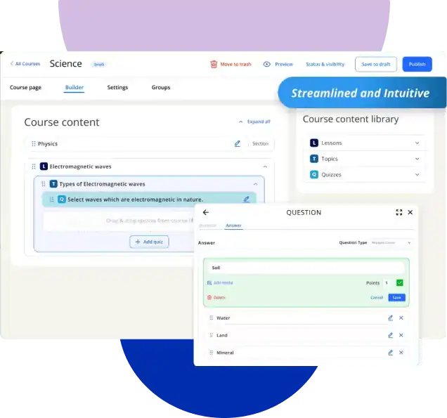 Design and publish courses your way. Select the topics, teaching style, and format that suit your expertise. You have complete control over your content and how you engage with learners.