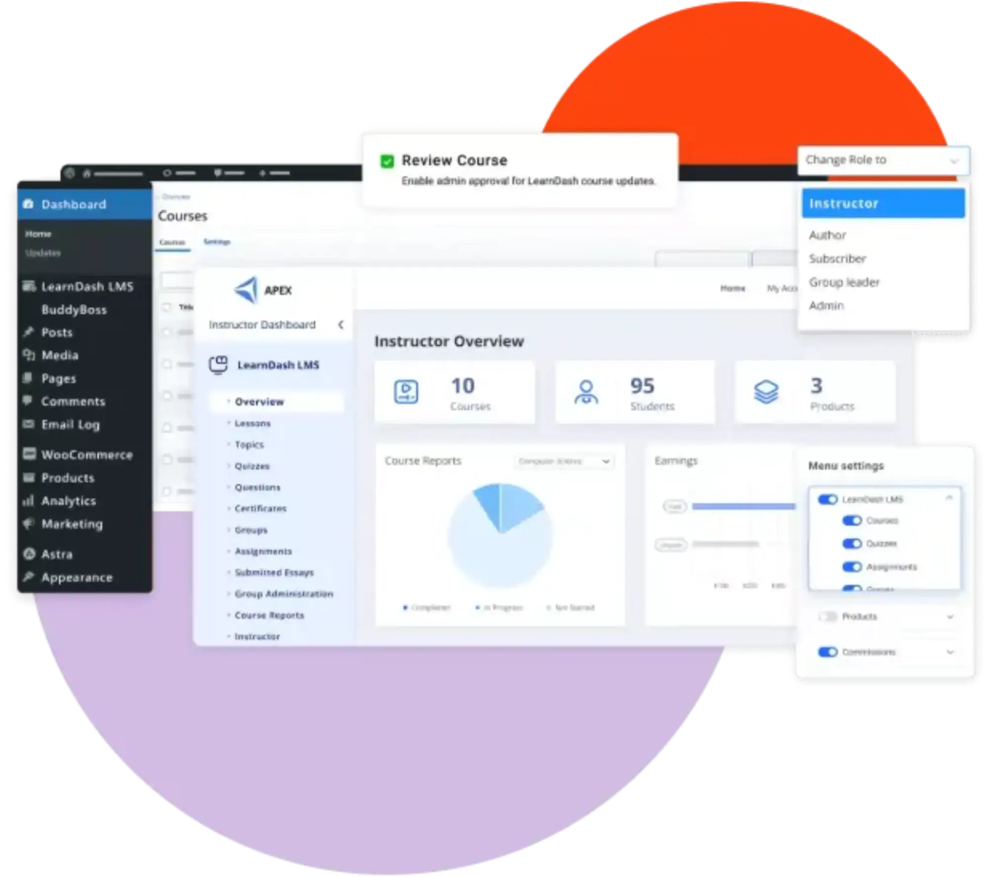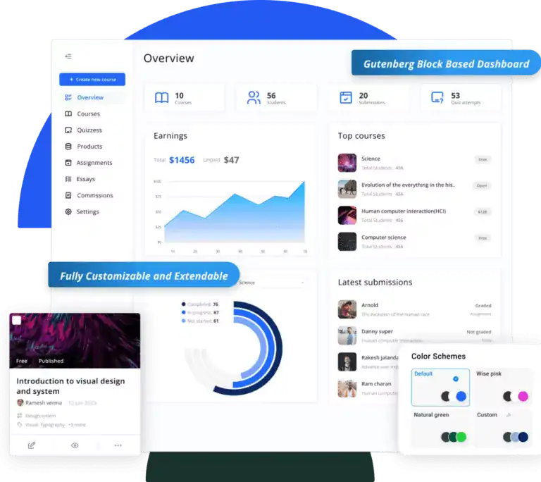 Front-end Dashboard is a feature designed to provide instructors and administrators with a user-friendly interface on the Front-end. It enables easy management of courses, quizzes, lessons, and other essential tasks without the need to access the WordPress backend.