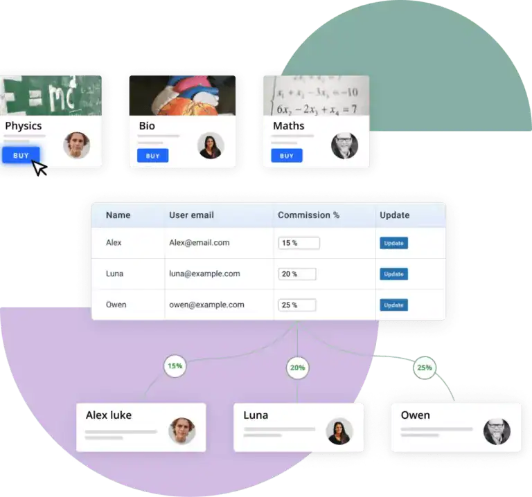 Easily set commission percentages for instructors, allowing them to earn a share from each course sale based on the rate set.