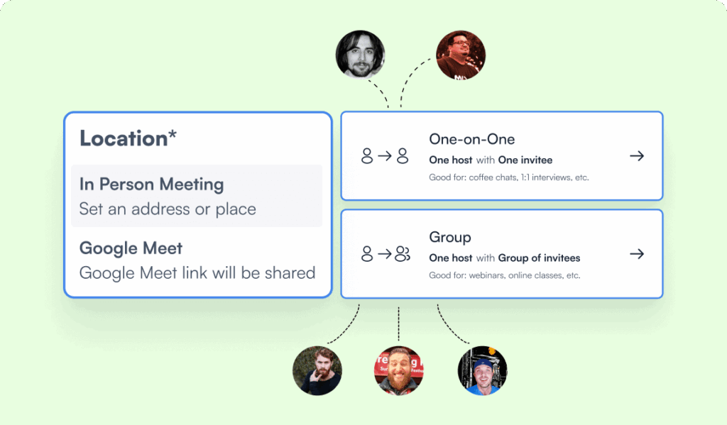 Meet online or offline. Meet with a person or a group. Arrange any type of appointment in a flash with FluentBooking and meet people your way!