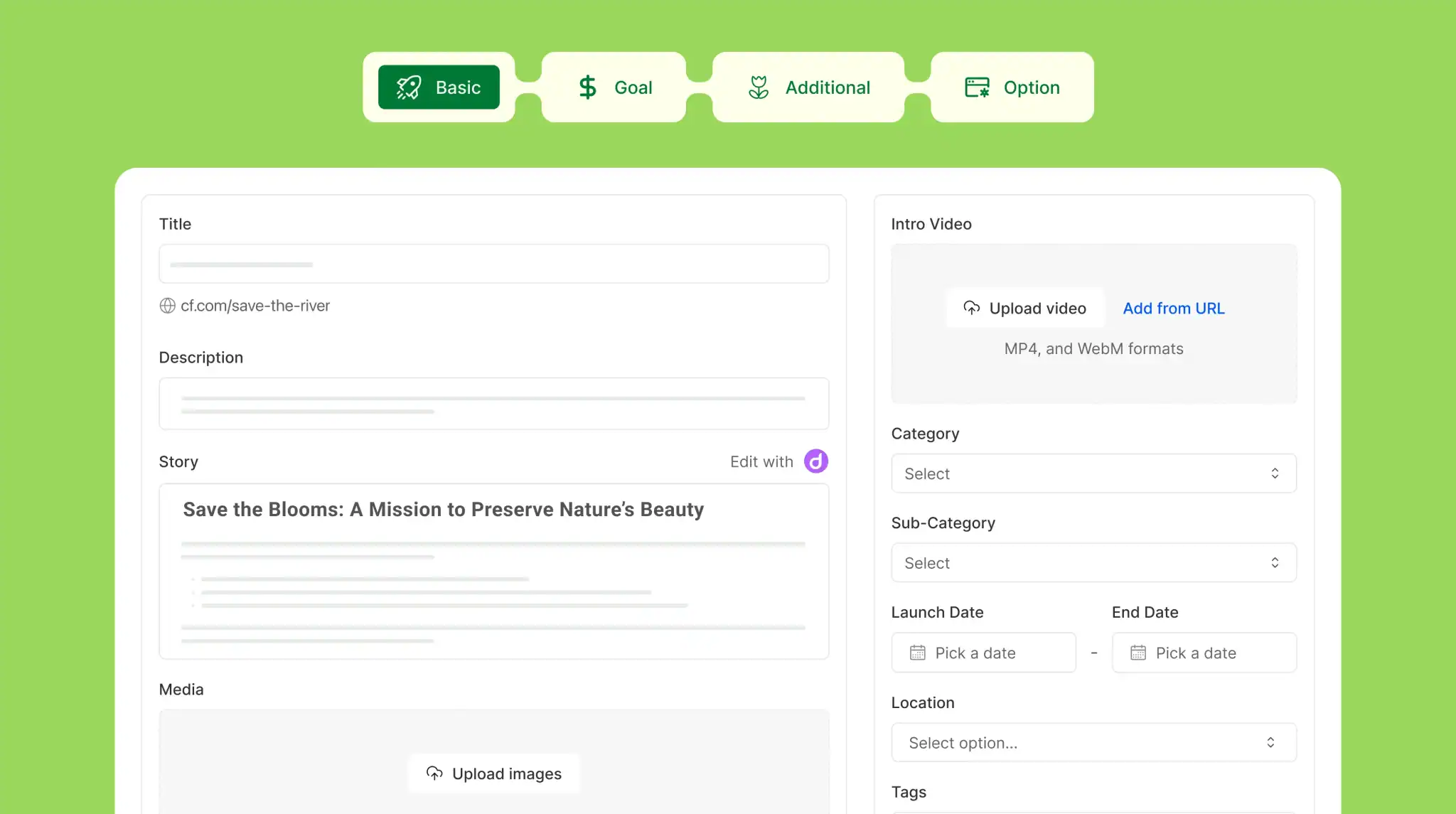 Let your campaigns speak through powerful storytelling with rich text, images, and media.