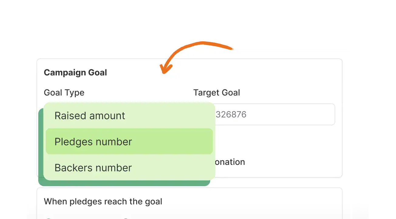 Define your fundraising goal, choose an amount, and decide what happens when your crowdfunding campaign is completely funded.