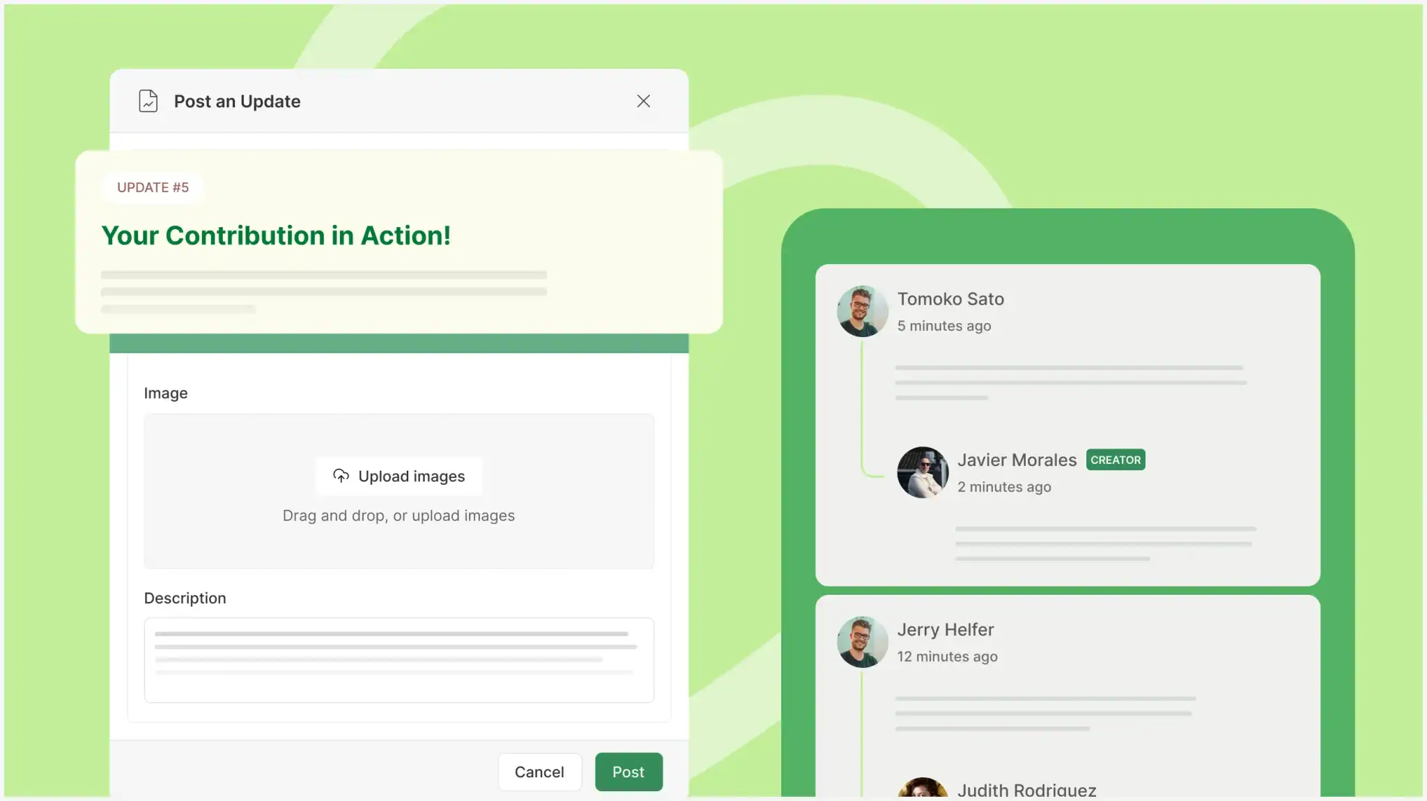 Encourage supporters to comment, share feedback, and celebrate milestones.