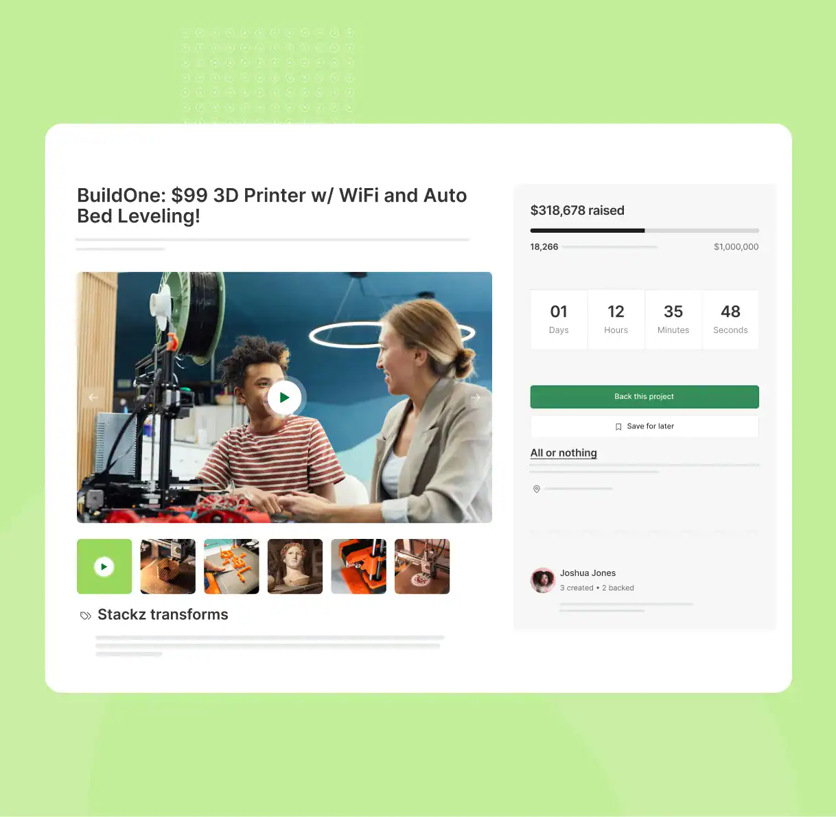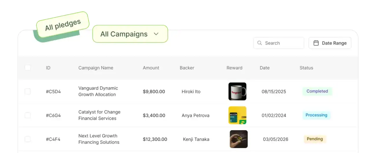 Keep backers informed and engaged with real-time campaign updates and progress reports.
