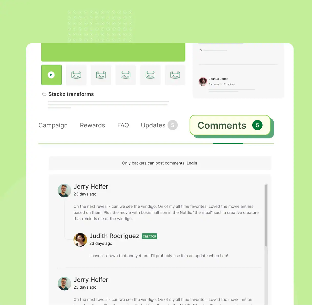 Build trust and engage your community by letting backers ask questions and leave public messages directly on your campaign.