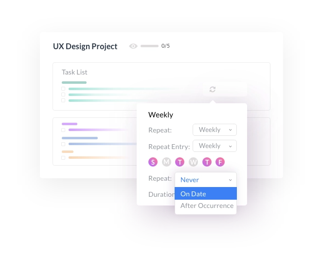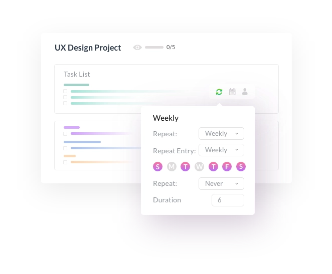 Let your repetitive task be automated with recurring task functionalities. You can easily set your task weekly, monthly and yearly. The expires options help you to set when the recurring will be stopped.