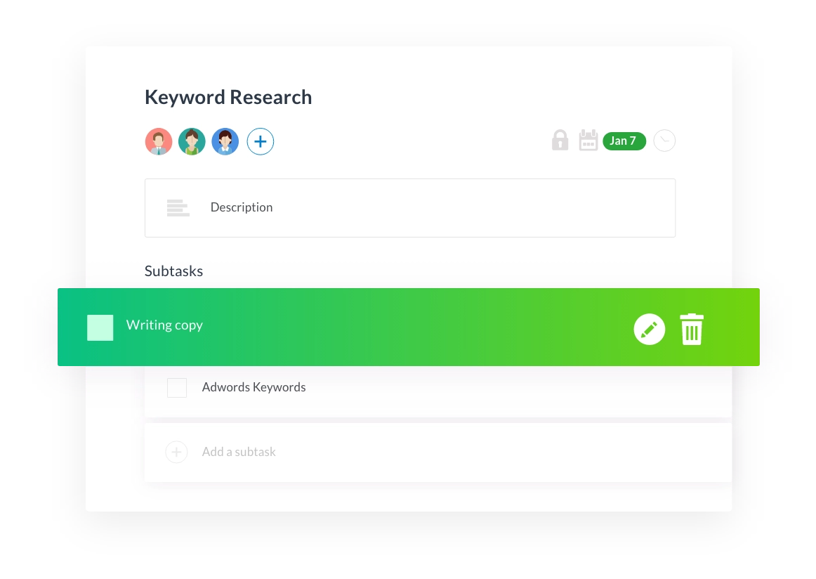 Need to make changes? Don’t feel you’ve to delete and do it all over again. Edit sub tasks as desired, and mark as complete when you’re done!