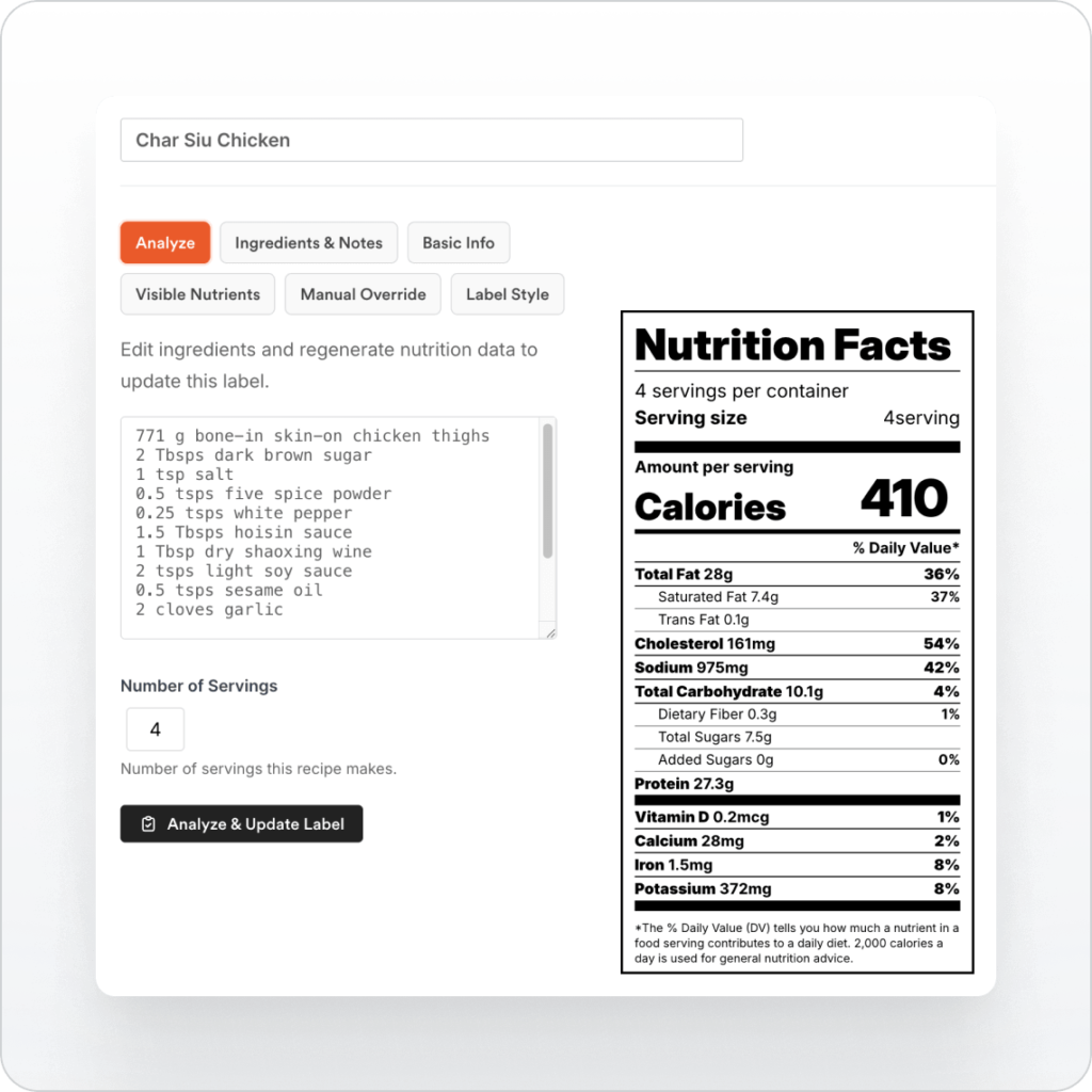 Our nutrition label generator transforms any recipe into FDA-compliant labels in 4 simple steps.